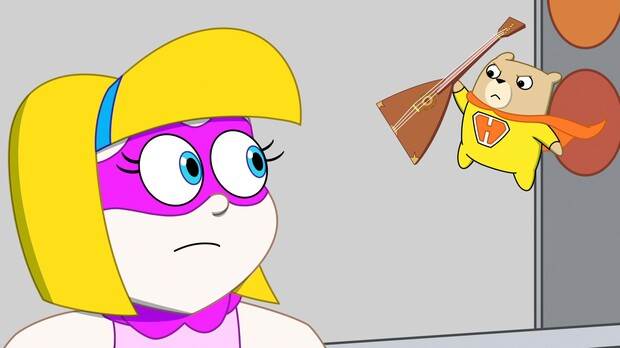 Another Meteor is coming toward the station, and this one is made of a different material. Gretel is able to destroy it easily with one punch, but a tiny orb has survived and blasts through another pod in the space station, destroying (rather comedically) the main computer on board. Again, the Commander uses her quick problem solving skills and rebuilds the main computer – that ridden with guilt, still manages to get on its feet(?) and jump aboard the escape shuttle, leaving Devin/Kevin and the Commander behind.