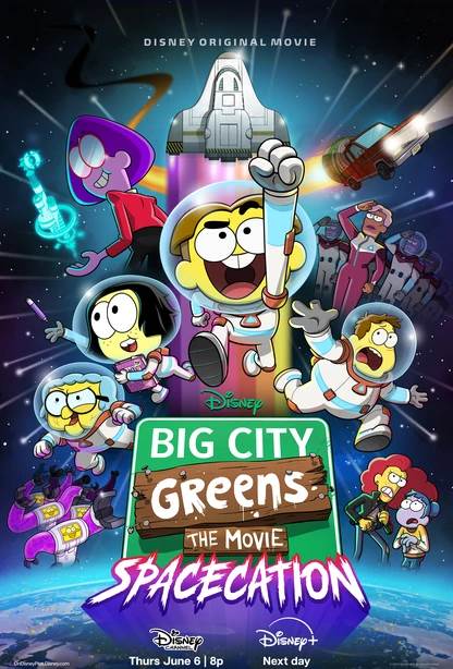 - Big City Greens the Movie: Spacecation follows the Green family as they embark on an adventurous outer space-bound vacation. When thrill-seeker Cricket tricks his family into taking a “road trip" in space, chaos in the cosmos quickly ensues. Despite growing frustrations between Cricket and his dad, Bill, the two must learn to appreciate each other’s unique perspectives in order to prevent Big City from being destroyed by an interstellar disaster.