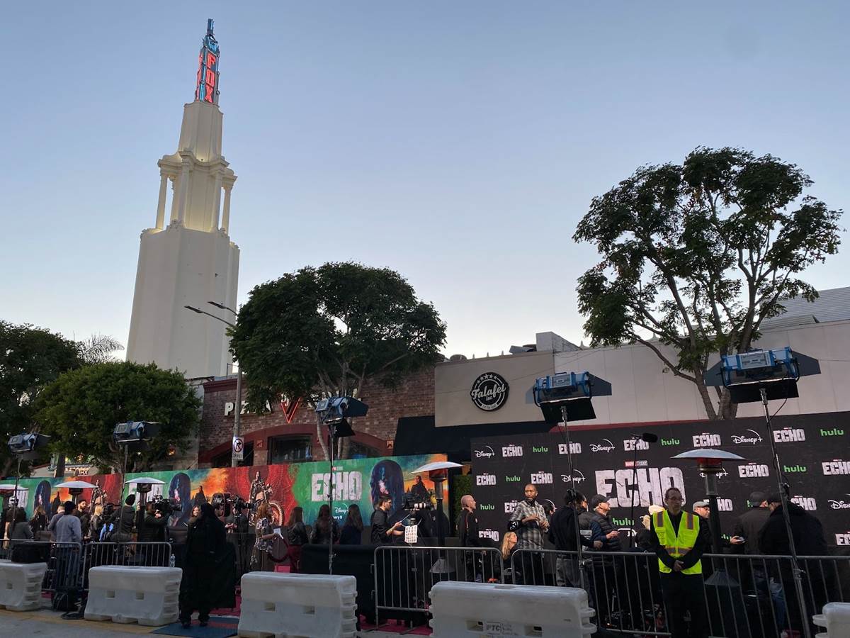Arriving at the historic Westwood Village theater, it was cool to see the venue decked out in imagery from Echo and Marvel Studios.