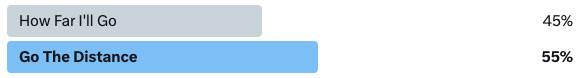 Before we move on to our next matchup, let’s take a look at our last result. In our last matchup of the first round, we had our first upset. “Go The Distance" outlasted “How Far I’ll Go" to bring Hercules into the Elite 8.