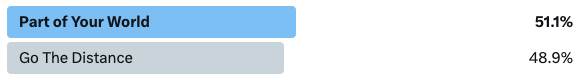 Before we move on to our next matchup, let’s take a look at our last result. The last spot in the Final 4 was up for grabs and the result was our closest Mouse Madness matchup ever! Just a few votes separated “Part of Your World" from “Go The Distance," to send the Little Mermaid song into the semifinal.