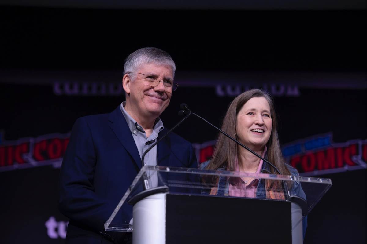 The biggest surprise and ovation came as the panel was wrapping up and best-selling author and series executive producer Rick Riordan alongside fellow executive producer Rebecca Riordan took the stage to thank us all for “braving the monsters" before introducing the final clip of the panel: the new take on the iconic ‘capture the flag’ scene.