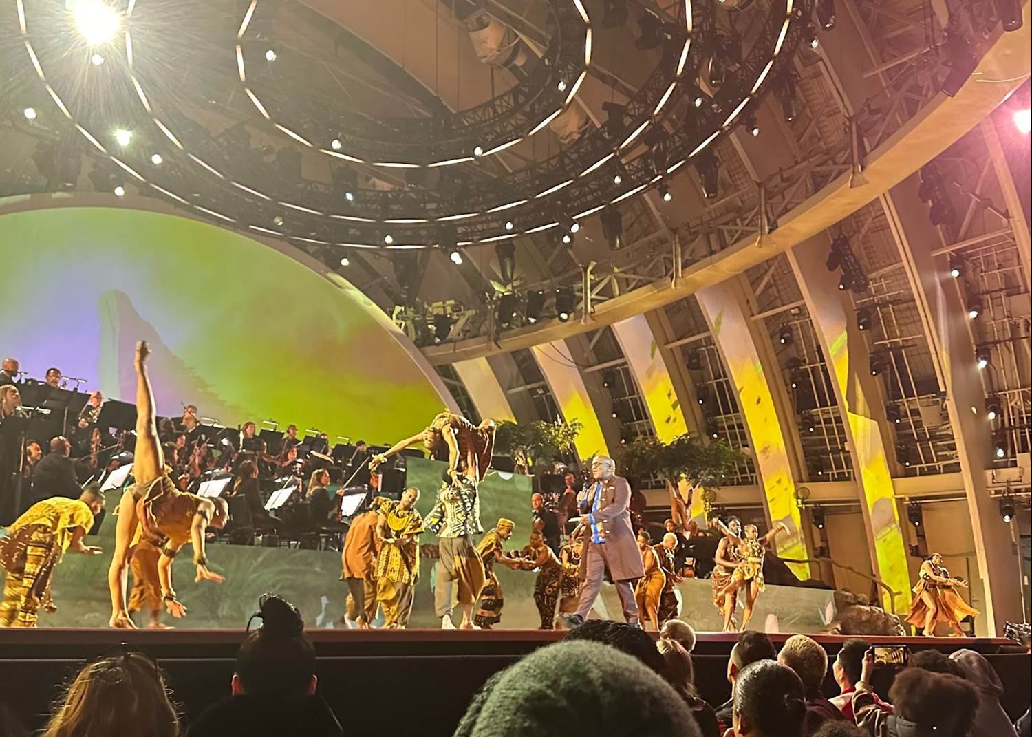 In between the larger than life performances, the live orchestra and choir accompanied clips of the beloved animated classic. The Hollywood Bowl was covered in projection mapping, really immersing the audience into Pride Rock.