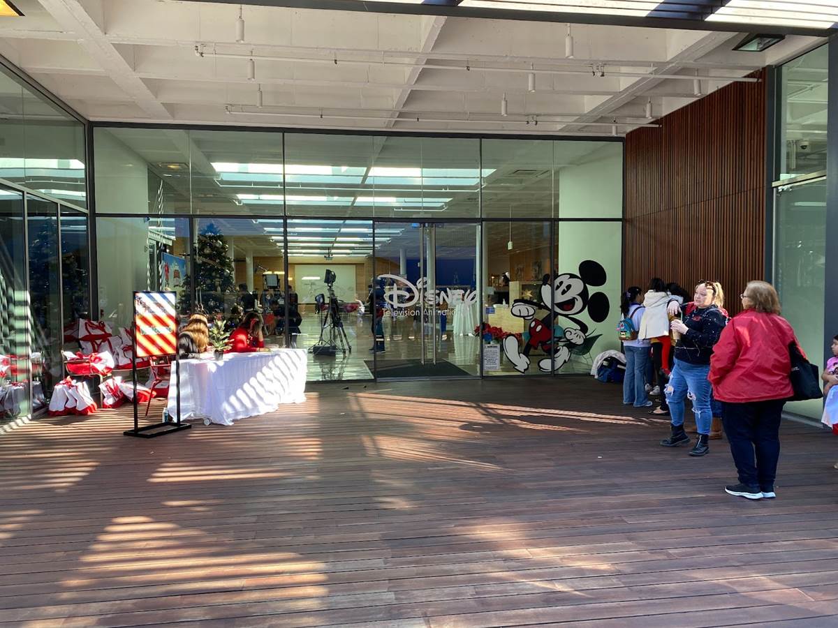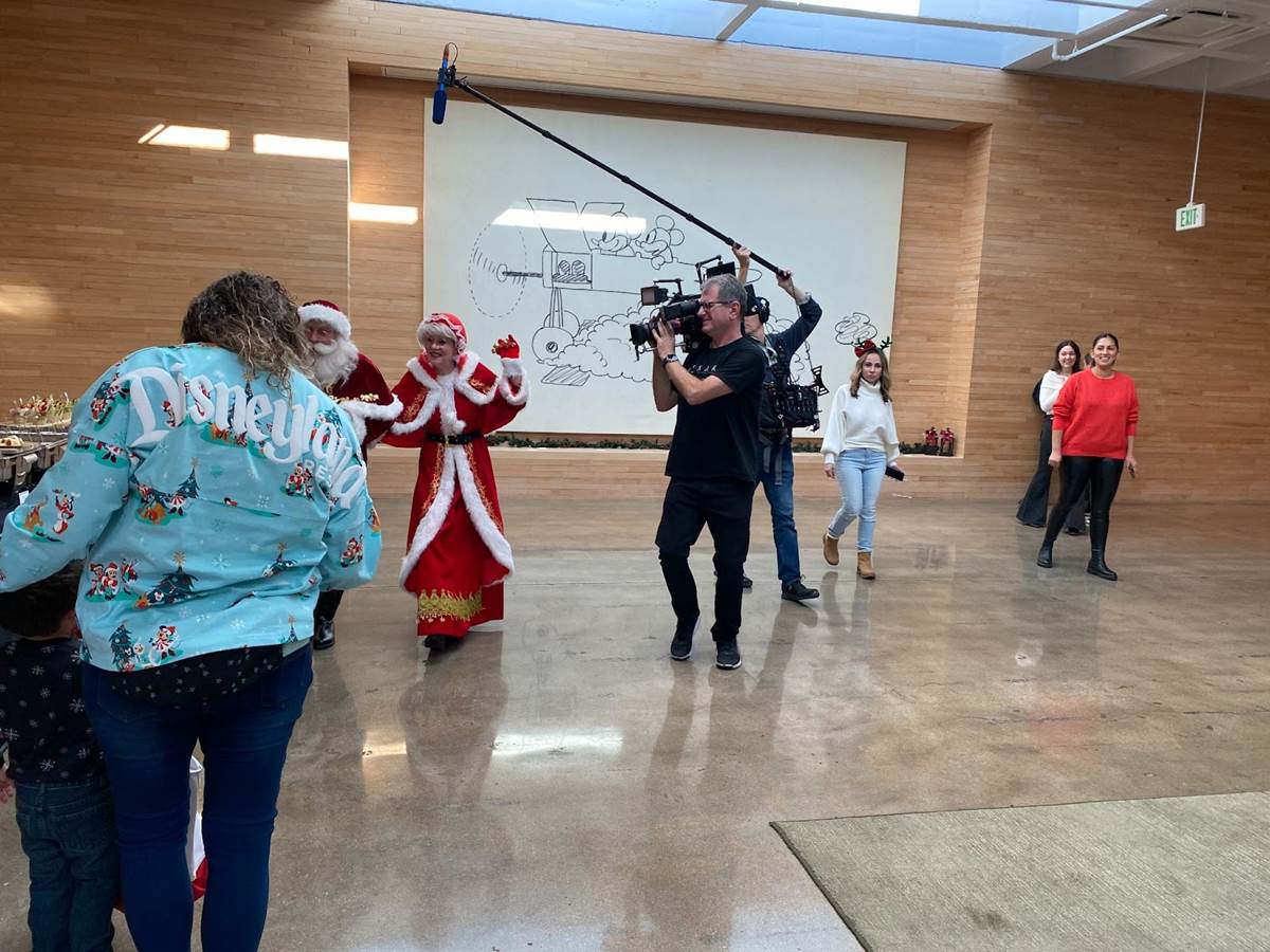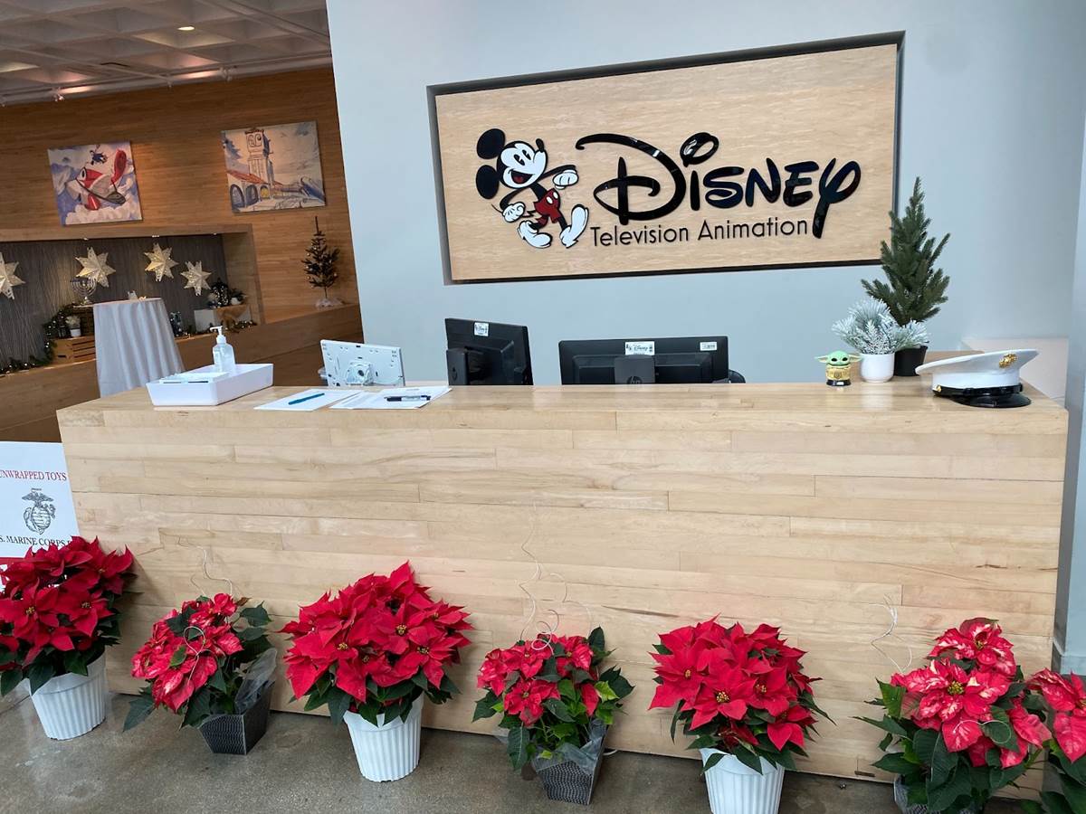 We arrived at this Disney TV Animation building on Saturday morning to find that the building had been decked out for the occasion in festival and colorful holiday decor. Once we checked in for the party, inside we discovered themed photo ops and craft stations for the families in attendance to enjoy. The attendees were local military families from Toys for Tots, and the holiday party was held in their honor.