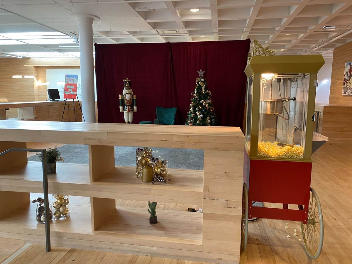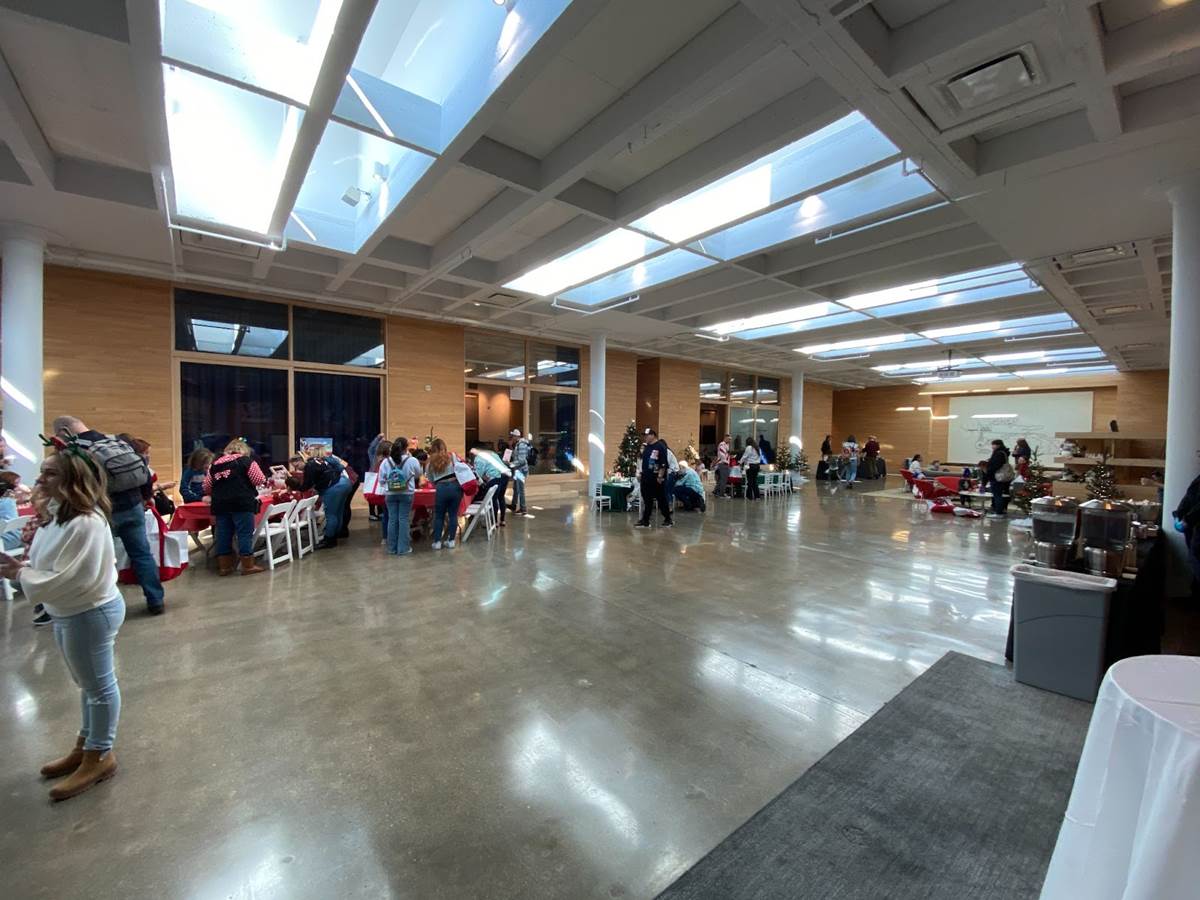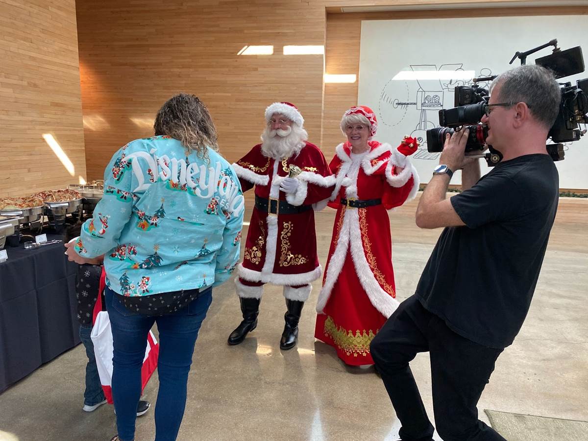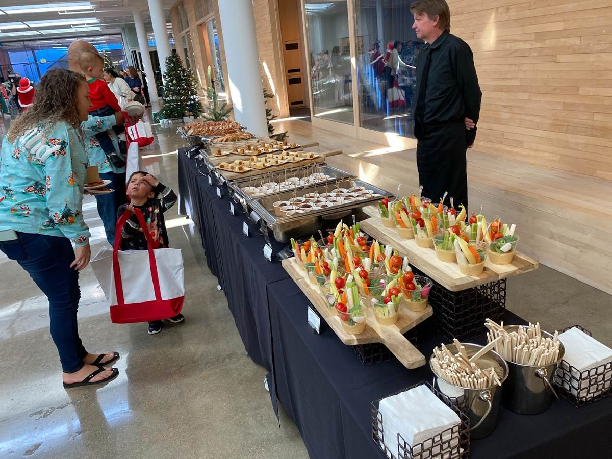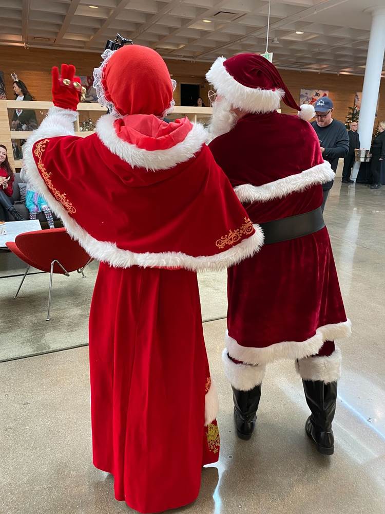 Beyond the crafts, Christmas trees, and plentiful food, there were also appearances by Santa Claus and Mrs. Claus, who roamed through the building’s lobby where the party was set up, greeting children and posing for photos against their own themed backdrop.