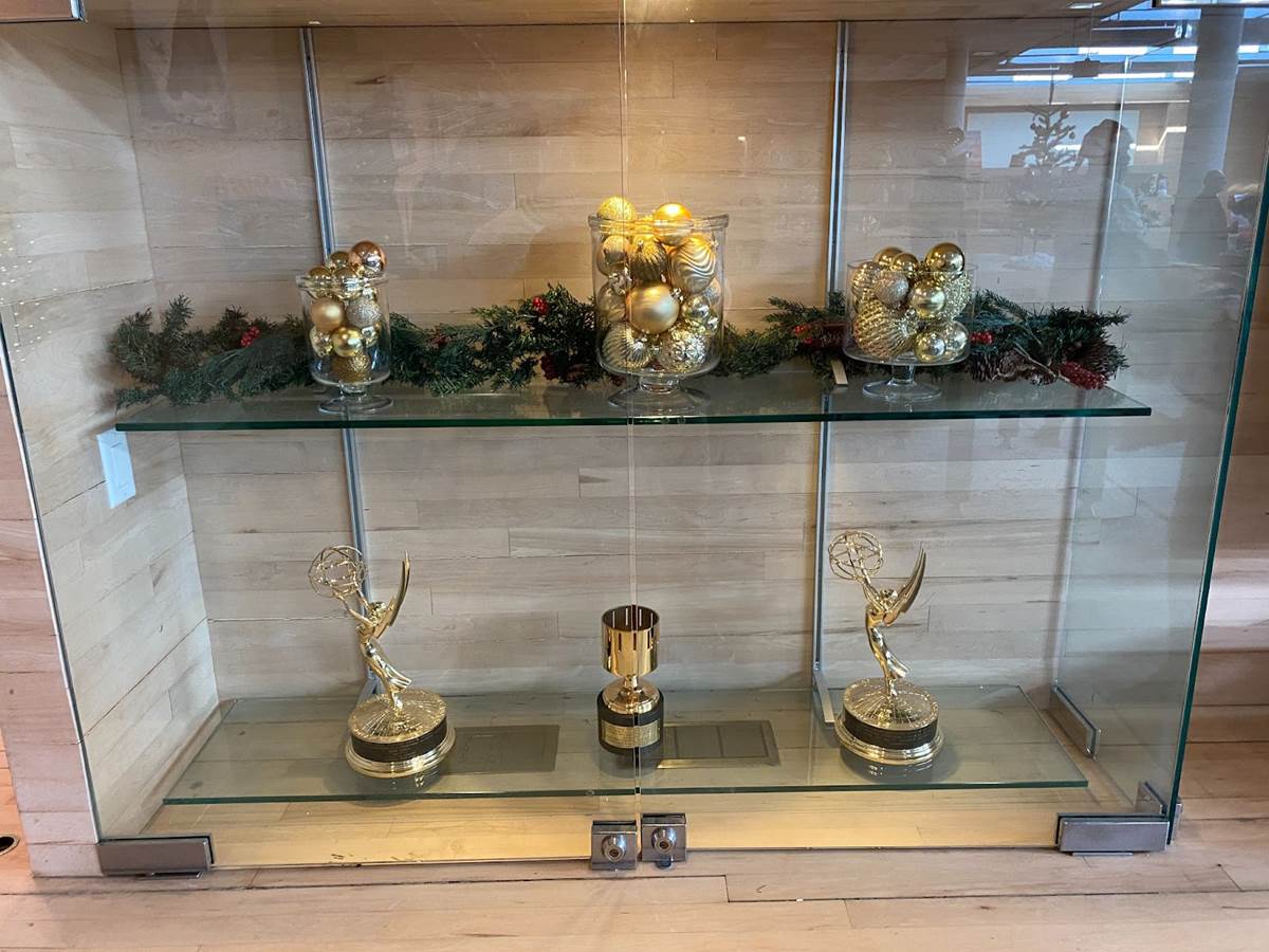 Adjacent to the party was a screening room set up to show festive episodes of favorite Disney Junior series, while as an animation fan I thought it was just pretty cool to have the opportunity to explore this impressive space that I had never visited previously. I spotted some really wonderful artwork on the walls, foosball and pool tables for use by the Disney TV Animation employees, and even a display case holding some Emmy Awards– one of them even looked to be won by Mark Hamill for his guest voice appearance in Elena of Avalor!