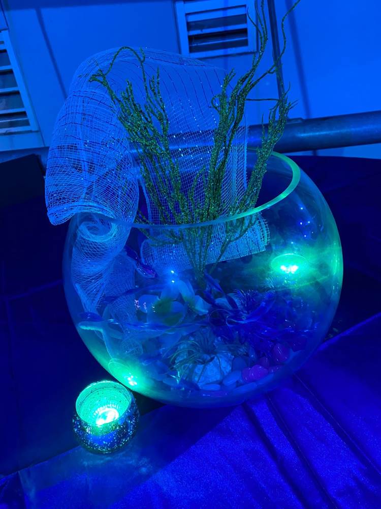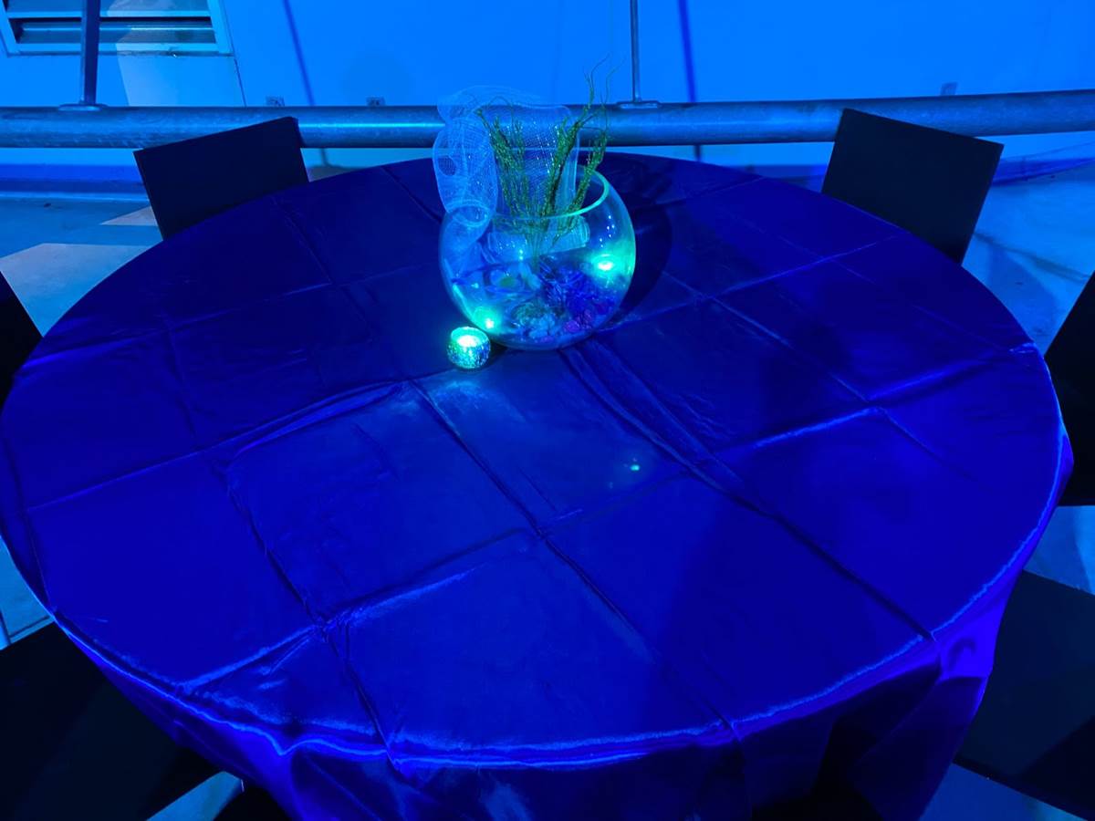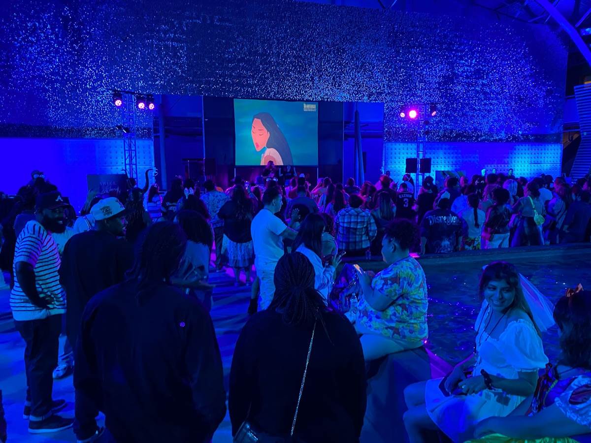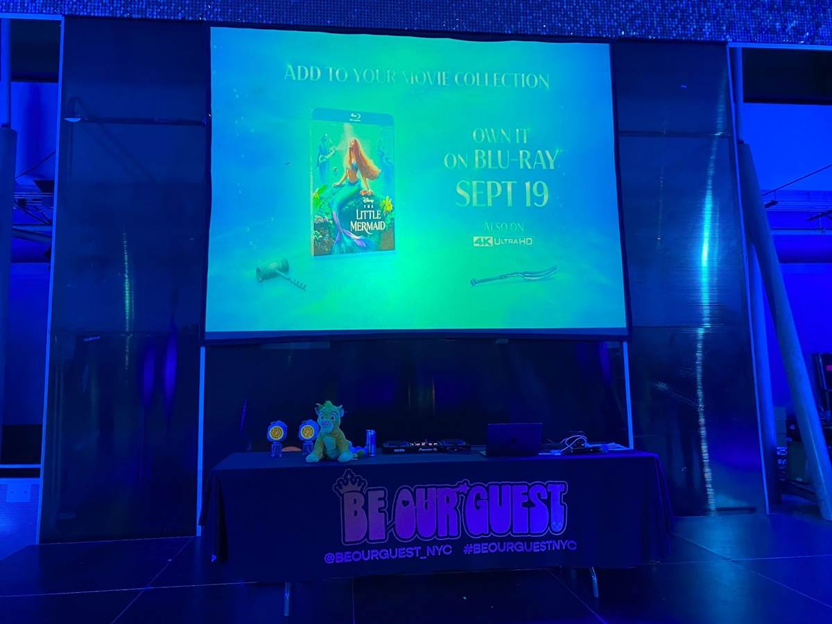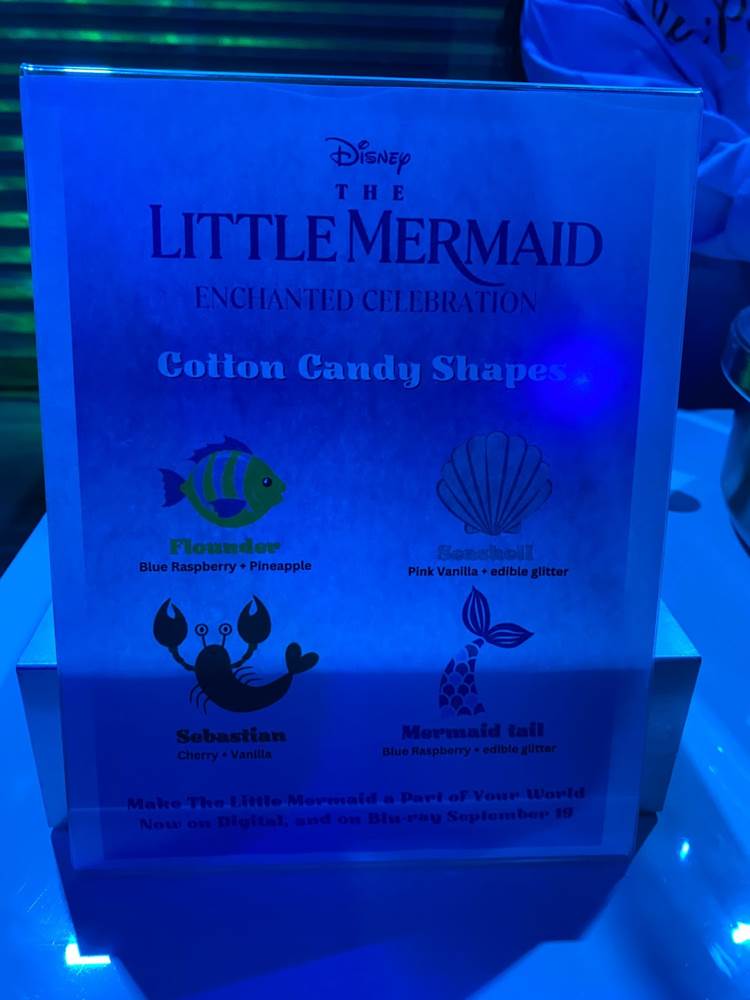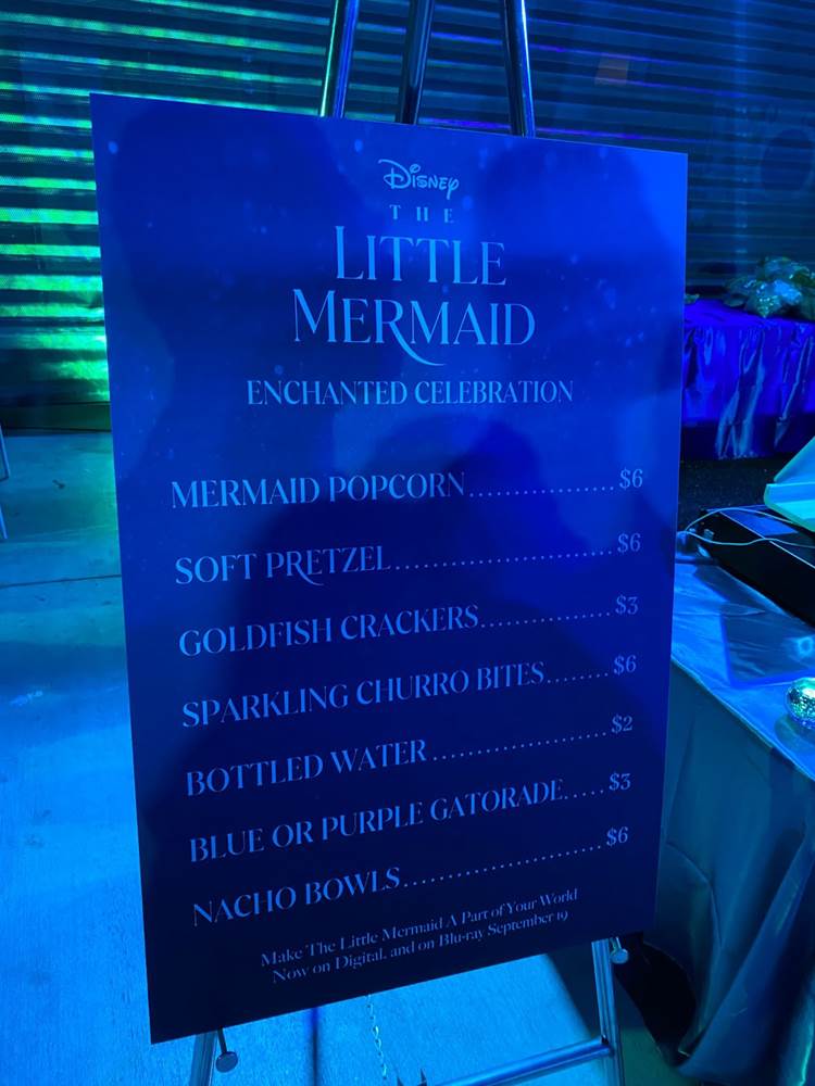 The Little Mermaid Enchanted Celebration began at 8:00 PM Friday evening at the Science Center’s event space, with fans lining up down the sidewalk for admission. Outside the entrance were some cool lighting effects and posters featuring characters from the movie.