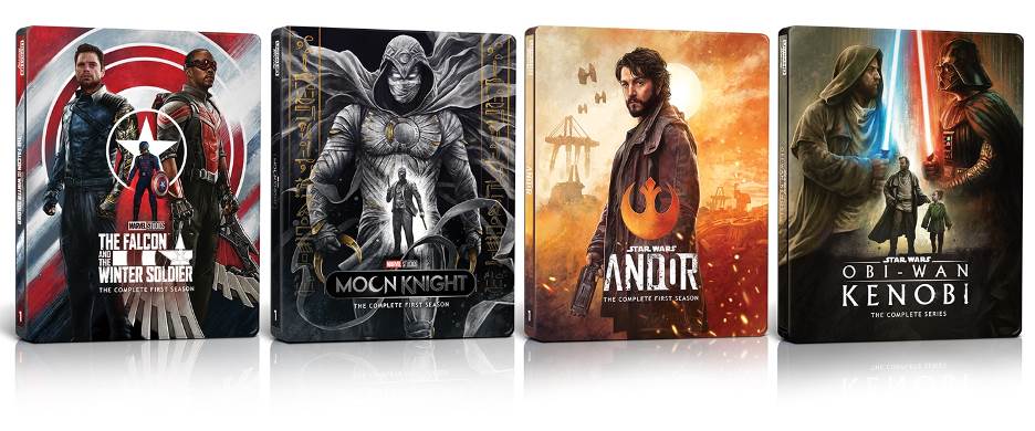 - The Falcon and The Winter Soldier, Moon Knight, Obi-Wan Kenobi, and Andor arrived on 4K UHD and Blu-ray collectible Steelbook on April 30th.
