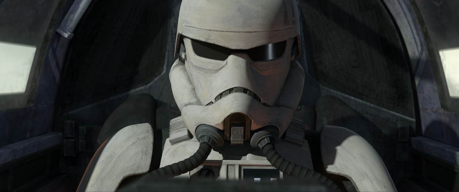 “Flash Strike" picks up immediately where last week’s episode left off– with Clone Force 99’s ship magnetically attached to the bottom of an Imperial science vessel as it hurtles through hyperspace to the planet Weyland and the Mount Tantiss cloning facility. Aboard their shuttle, Hunter, Wrecker, and Crosshair (all voiced by Dee Bradley Baker) debate with their captive ex-Imperial Vice Admiral Rampart (Noshir Dalal) about what their plan should be when they actually arrive. Meanwhile, Echo (also Baker) sneaks around the Imperial ship, knocks out a stormtrooper, steals his armor, and hacks into the computer system. Down on the surface, the villainous Dr. Royce Hemlock (Jimmi Simpson) is alerted about the possible security breach in the aftermath of the Bad Batch’s orbital station incursion in the previous installment. In the sky above the planet, Clone Force 99’s shuttle disengages from the vessel and is immediately set upon by Imperial fighters, which shoot it out of the sky, causing a crash-landing in the Weyland jungle.