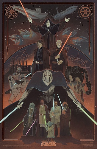 - StarWars.com: “The Art Show is a highlight of every Star Wars Celebration, StarWars.com is excited to announce the entries for Star Wars Celebration Japan 2025, where artists display and sell prints of artwork chosen by Lucasfilm. The art work in this year’s group represents illustrations created from a variety of styles and includes artists from around the world. Selections celebrate characters and locations from a variety of Star Wars tales including Star Wars: Return of Jedi, Star Wars: The Phantom Menace, Star Wars: Ahsoka, and The Book of Boba Fett. There are also pieces sure to please fans of Star Wars: Revenge of the Sith and Star Wars: The Force Awakens, which are both celebrating anniversaries this year. Read on for your first look at the full selection and hear directly from the artists as they share details about the inspiration and creation of each piece."