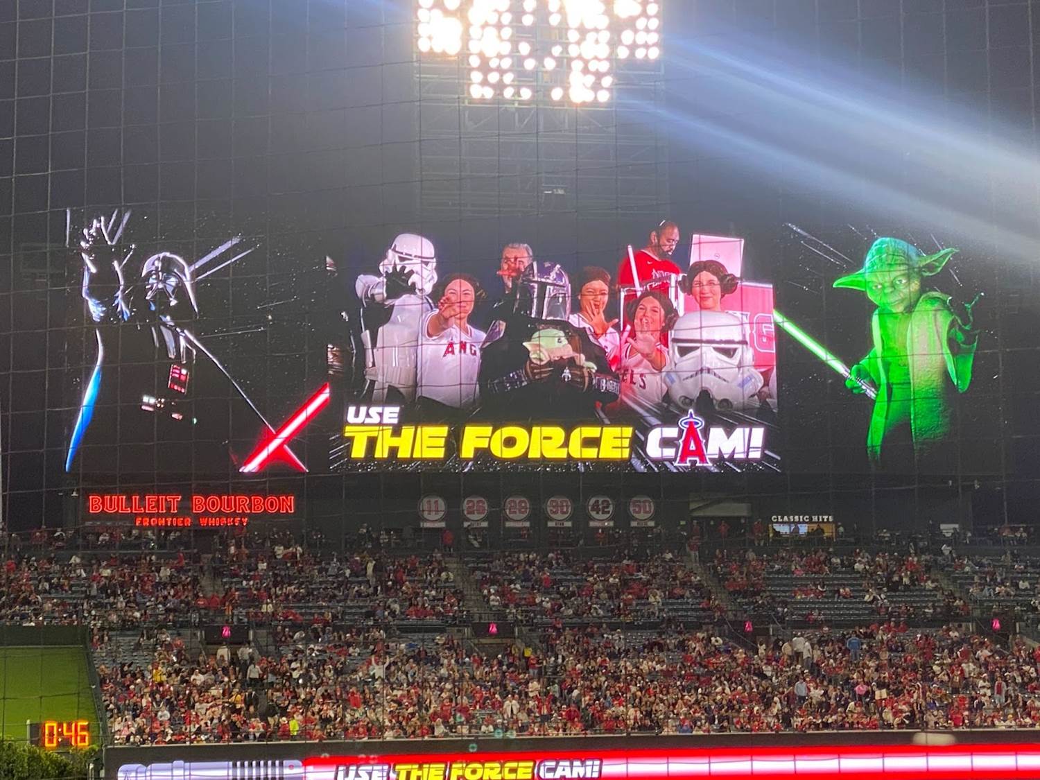 There was also a “Force Cam" that invited Angels fans to give their best Force pose and would occasionally swap out their faces for a familiar Star Wars helmet or head.