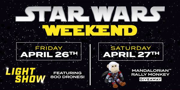 The following evening, which we did not attend, attendees of Star Wars Weekend at Angel Stadium received a Mandalorian Rally Monkey as a giveaway upon entry.
