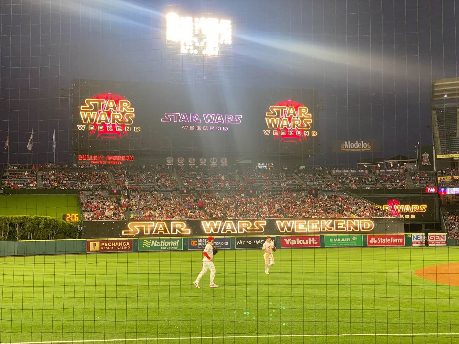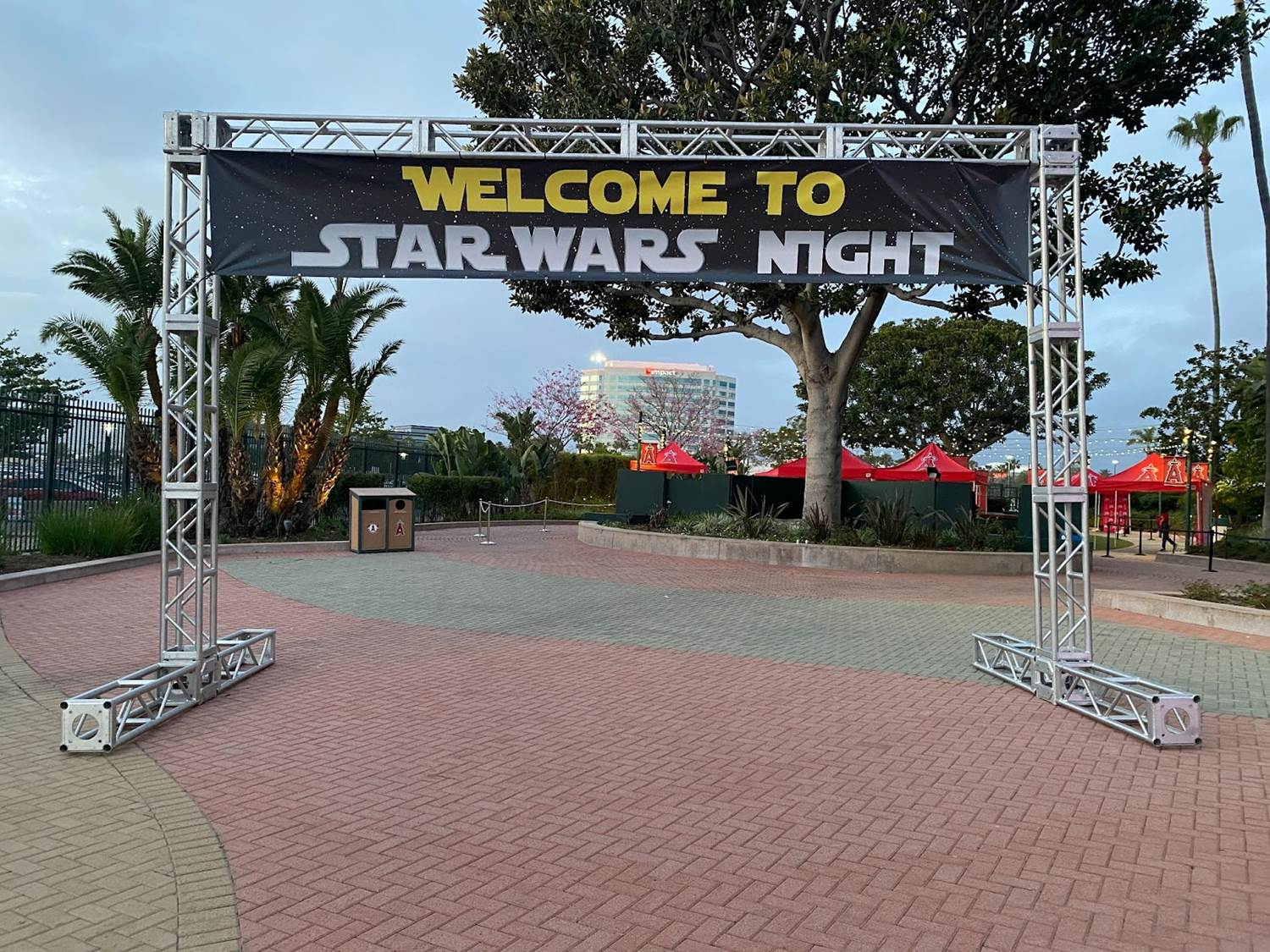 Earlier that evening we arrived at Angel Stadium to find the venue decked out in decor celebrating Star Wars Night / Star Wars Weekend, both outside and on the scoreboard itself.