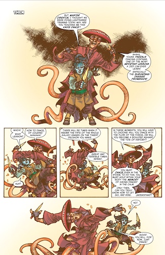 The High Republic Adventures (2023) #14 picks up right after the events of The Wedding Spectacular from December, with former Jedi Lula Talisola having just gotten hitched to the Force-sensitive non-Jedi Mikkian Zeen Mrala. But first we get a flashback to the training of a young Farzala Tarabal under Master Obratuk and a dancing lesson that will have implications for future events. Writer Daniel Jose Older and artist Harvey Tolibao then cut back to the “present" of this story, where war has broken out on the planet of Eriadu. After fending off the initial attacks and making their way to the waterfront where the bulk of the fighting is taking place, Lula and Zeen are enlisted by Sevran Tarkin to be her personal honor guard. This makes a lot more sense than Lula continuing to fight alongside the Jedi after having left the Order, so I’m glad it happened.
