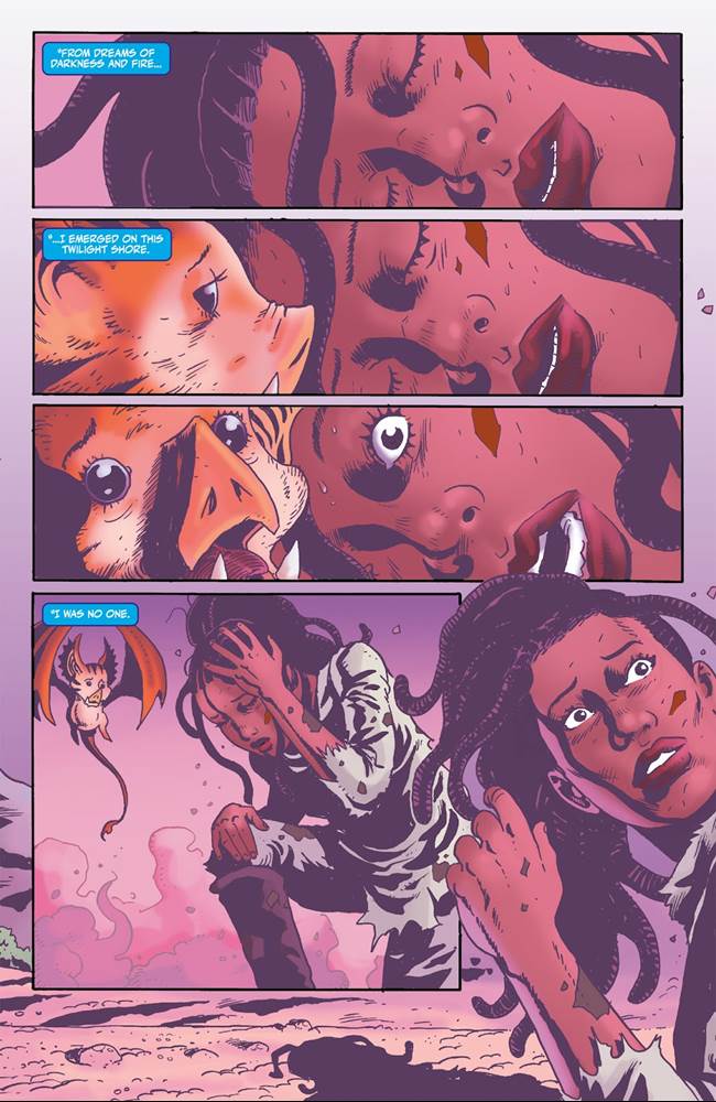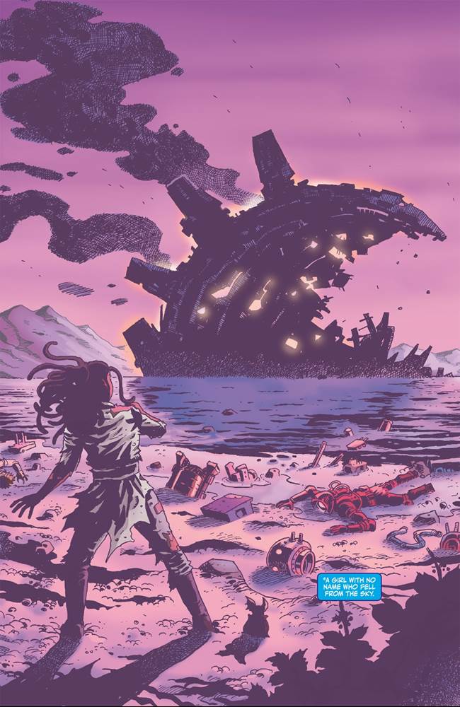 The High Republic Adventures (2023) #2 opens with a flashback– gorgeously illustrated by artist Nick Brokenshire of Star Wars Adventures and Star Wars: Hyperspace Stories-- to Jedi Padawan Lula Talisola waking up on a beach on the planet Eiram after the fall of the Republic space station Starlight Beacon. Lula finds herself suffering from amnesia, which as a story device is a little cliche and soap-opera-y, but it works here for the purposes of this book. She dons Nihil garb collected from the corpses around her and makes her way to the city, where she is attacked and then is surprised to find that she has the ability to control the Force in her own defense. She steals a ship and makes her way out into space, and then Older chooses to cut back to the “present" of Phase III, now drawn by The High Republic Adventures’ regular penciller Harvey Tolibao.