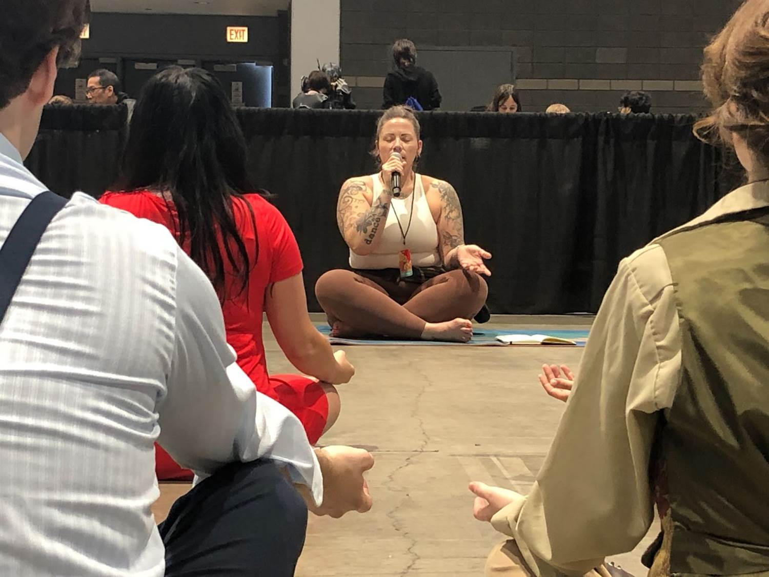 If you are familiar with yoga, then you know that we were on the floor, on our bellies, and on hands and knees; which isn’t exactly comfortable on a cement floor. But no one seemed to mind, and while this was definitely more advanced than the last time, it was less accessible. Everyone was able to modify to what best suited them and one participant even used a chair for some of the more challenging poses.