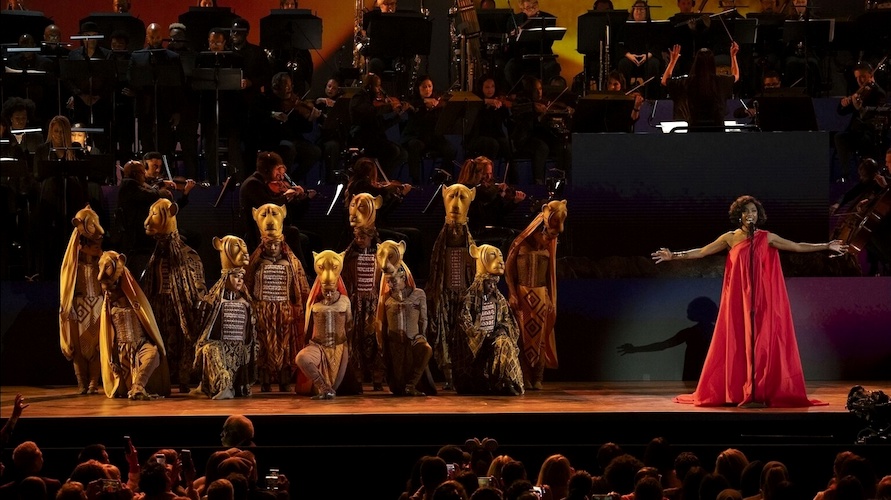 Personally, The Lion King is one of my favorite films from Walt Disney Animation Studios, and something I am personally and emotionally attached to. This entire concert is a celebration of that film and how it evolved. Fans, especially of the animated original, will enjoy the transition moments between each song or performance where they discuss the process, the characters, or even the origins of the original production, when it was called “King of the Jungle." Later, these segments evolve into the Broadway adaptation of The Lion King, and costumes, props, and puppets of which can be seen throughout the concert special.