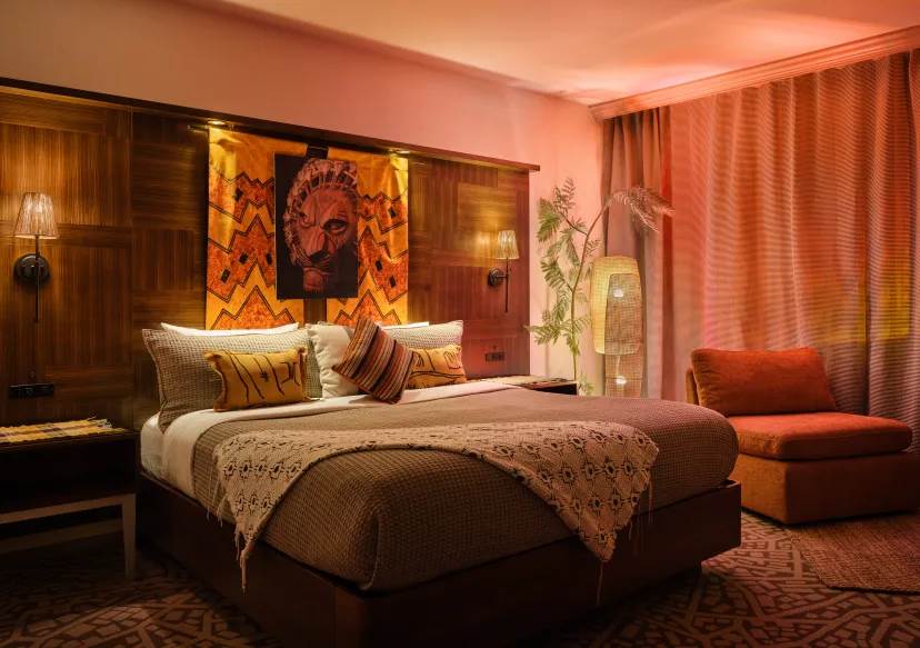 - The new one-king one-bedroom deluxe suite will bring guests to the heart of the Serengeti. Including large woven basket art, plants reminiscent of the grass of Africa’s plains, hand-painted Rafiki-inspired patterns, and a Rafiki sketch print welcoming guests into the suite, details of The Lion King can be found throughout. Fabrics used in the musical will also be showcased through pillows, rugs, and bedding.