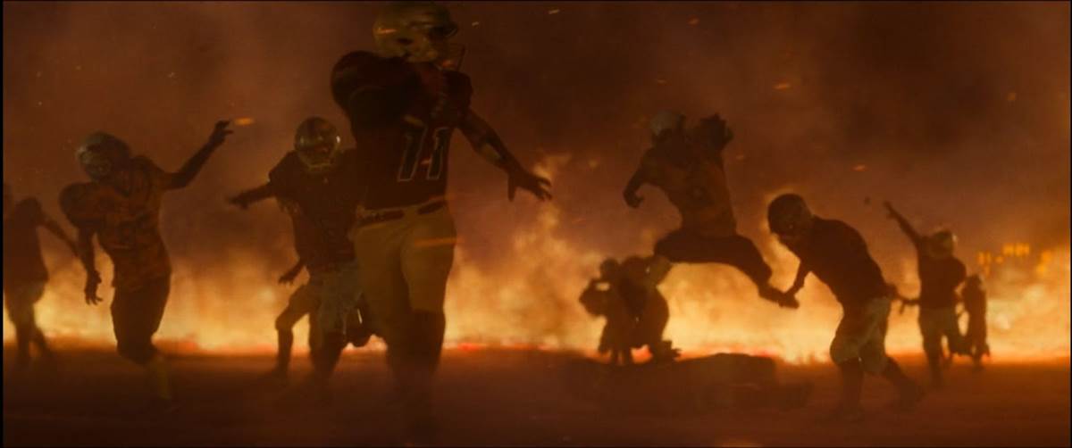 It’s raining as the football game begins. But Isaiah seems to be leading his team to victory when halftime rolls around. In the locker room, Isaiah speaks to keep his team motivated. He goes to his locker for something, and suddenly his world spins. The Polaroid camera is there! He freaks out as his teammates drag him back to the field. He begs Coach Rifken (Gardiner Millar) to take him out of the game, but he doesn’t listen. In a huddle, the team asks Isaiah for the play. He orders them just to protect him, and they get confused. When the referee blows the whistle, Isaiah looks over and sees the face of Harold in his place. As he begins to run, all of the players appear to be Harold to him. And all of them have fire in their eyes.