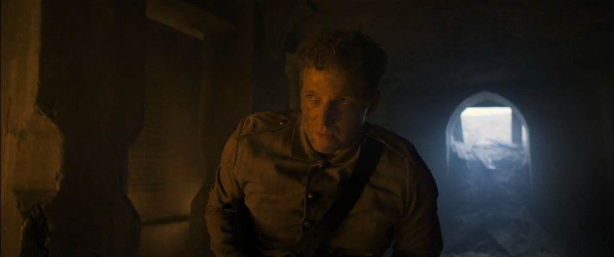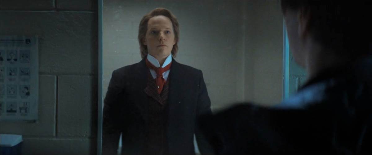 The human who emerged from Slappy at the end of the previous episode is seen in a flashback to 1879. He’s in the trenches of a battlefield, where he gets shot in the abdomen. The end seems near until an explosion sends him falling through the earth into a concealed tomb. He’s bleeding, but has enough strength to ignite his lighter to see where he is. He sets fire to a path of oil that illuminates the chamber, which is covered in inscriptions in another language, one the man seems capable of reading. Three words glow brightest, as if calling to him, so he recites them. “Memori Hosanna Kanduu." Suddenly, the blood that was leaking from his wound retreats back inside him. The wound heals.