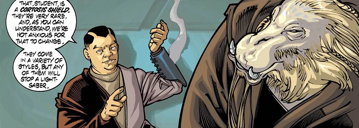 Cortosis became more prevalent in the Star Wars: Knights of the Old Republic video game and its sequel The Sith Lords, which “treated the effects of Cortosis weapons as merely energy-resistant and only capable of blocking lightsaber attack," much like the behavior of Beskar metal in The Mandalorian and other recent Star Wars media. And Cortosis also made appearances (again, with varying properties) in the Star Wars: Jedi Knight video games, Star Wars: Obi-Wan, and the Star Wars: Darth Bane novel trilogy. That brings us to the current Star Wars canon, where Cortosis first appeared in the novel Star Wars: A New Dawn by John Jackson Miller and was later featured in Star Wars: Thrawn - Alliances by Zahn and the Star Wars: Doctor Aphra comic book, among a few other appearances.