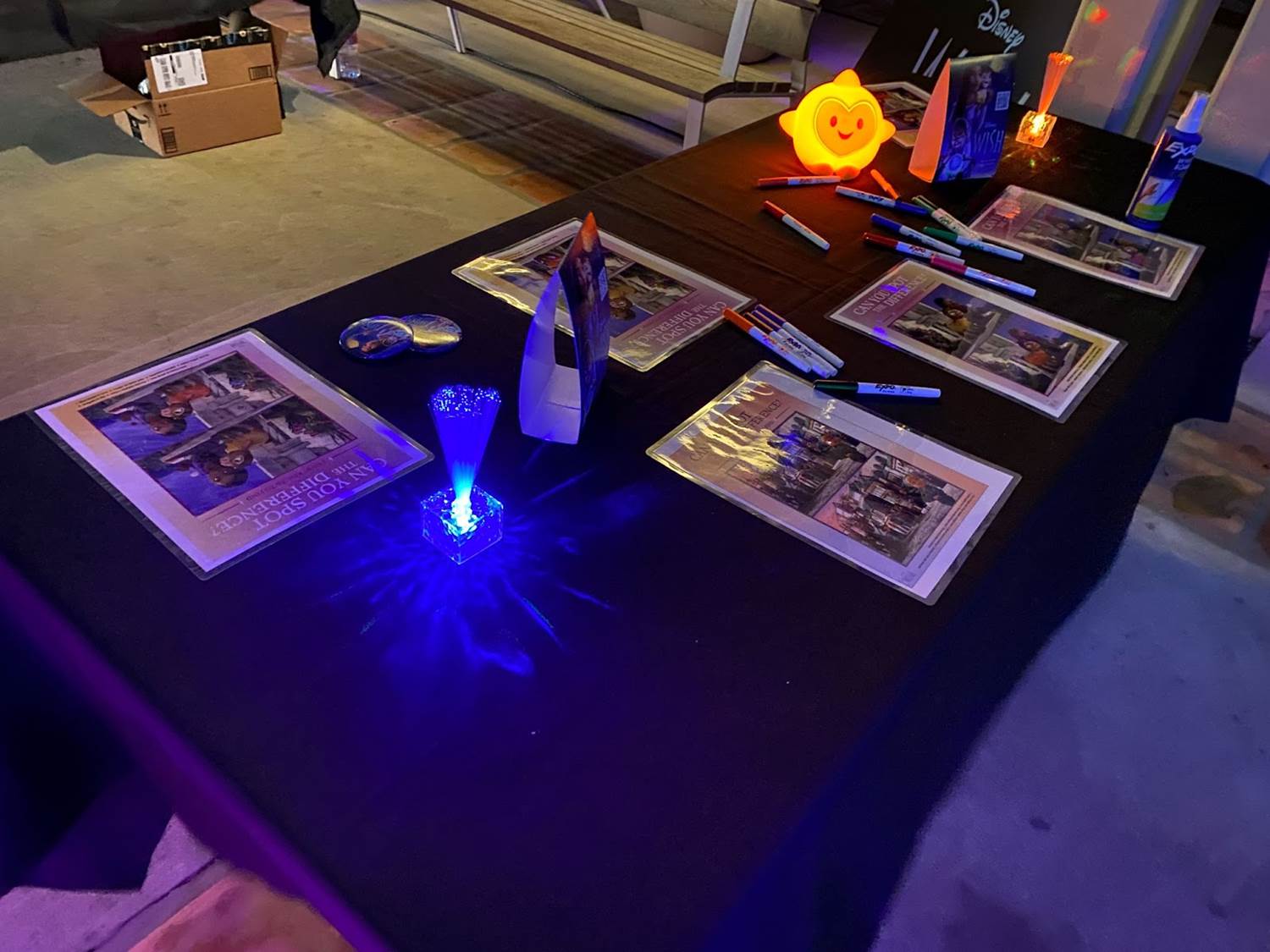 We decided to go through the Wish activation next before experiencing Astra Lumina itself. Here guests could sing Wish songs in karaoke, pick up swag like download codes, buttons, keychains and stickers depicting the characters of Asha and Star, and write their own wishes to be placed inside a Wish-themed wishing well standee (pictured above). There were also new mini-posters on display representing each of the original songs in the movie like “This Wish," “This Is the Thanks I Get," and “I’m a Star."