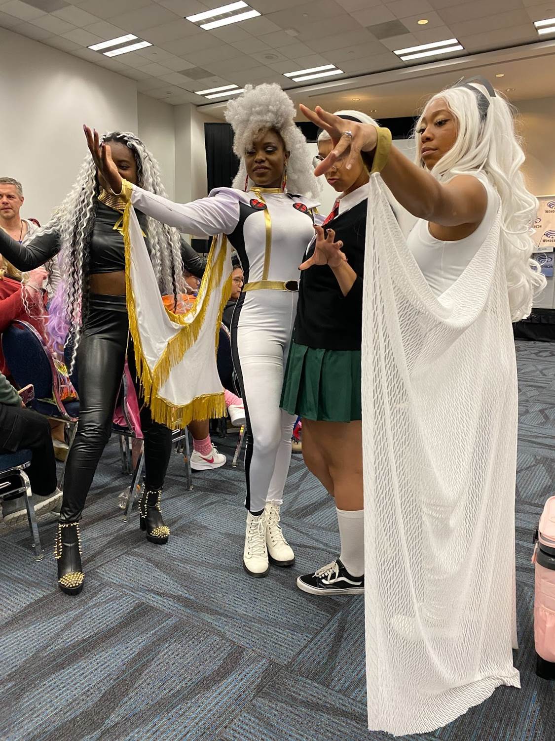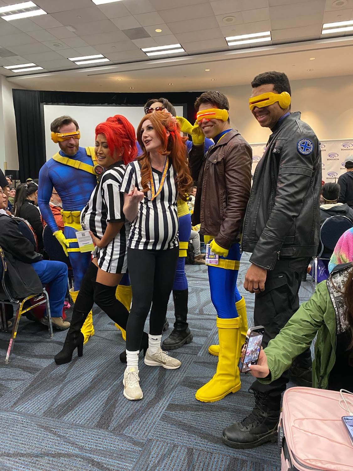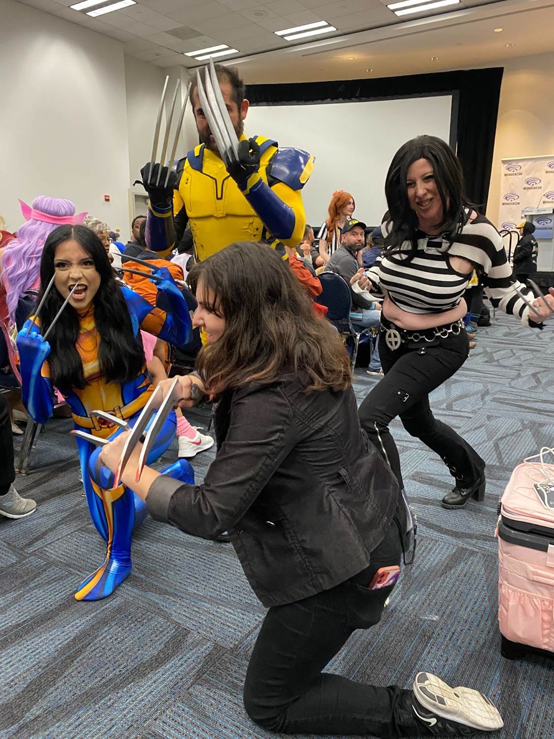 Before the panel began, groups of cosplayers came up to the front of the room to pose for photos with other attendees dressed as the same X-Men characters, like Wolverine, Storm, Cyclops, Jean Grey, Magneto, and Bishop.