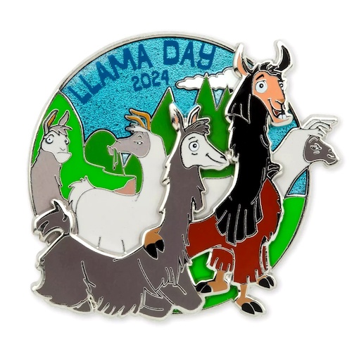 Llama Day 2024 has arrived and Disney Store is celebrating in style with a special date pin to cmmmemorate the occasion. This limited edition pin of 3,400 features a pin-on-pin design showcasing Emperor Kuzco as a llama. The pin celebrates "Llama Day 202r" and is made with enameled cloisonné, enhanced by simulated glitter accents and laser-printed details.