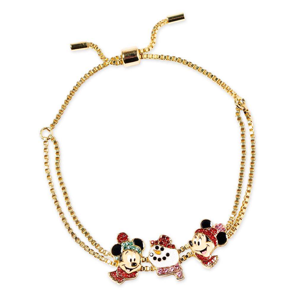 - Finally, a charm bracelet with Mickey, Minnie, and a Snowman head will bring the perfect pop of whimsy and merriment to your winter celebrations.