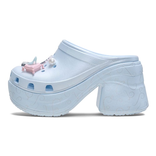 - Arriving today online, these chunky heels are pearlescent blue and decorated with an enchanting assortment of Jibbitz charms (fully attached).