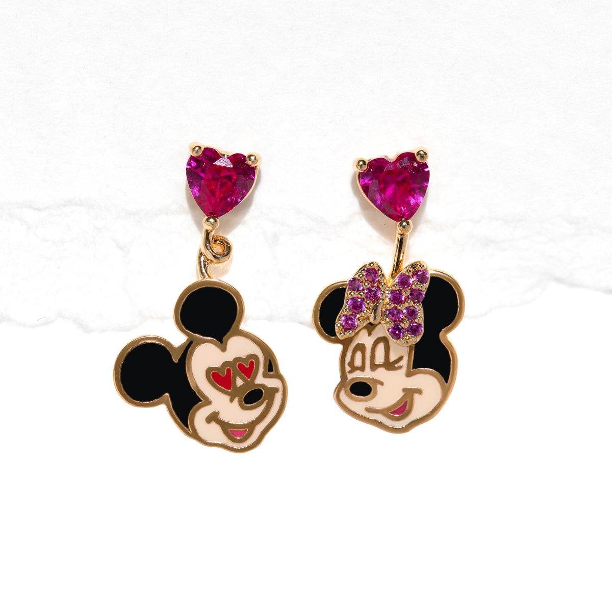 Disney Mickey Mouse & Minnie Mouse In Love Earrings (Available in Gold Only)