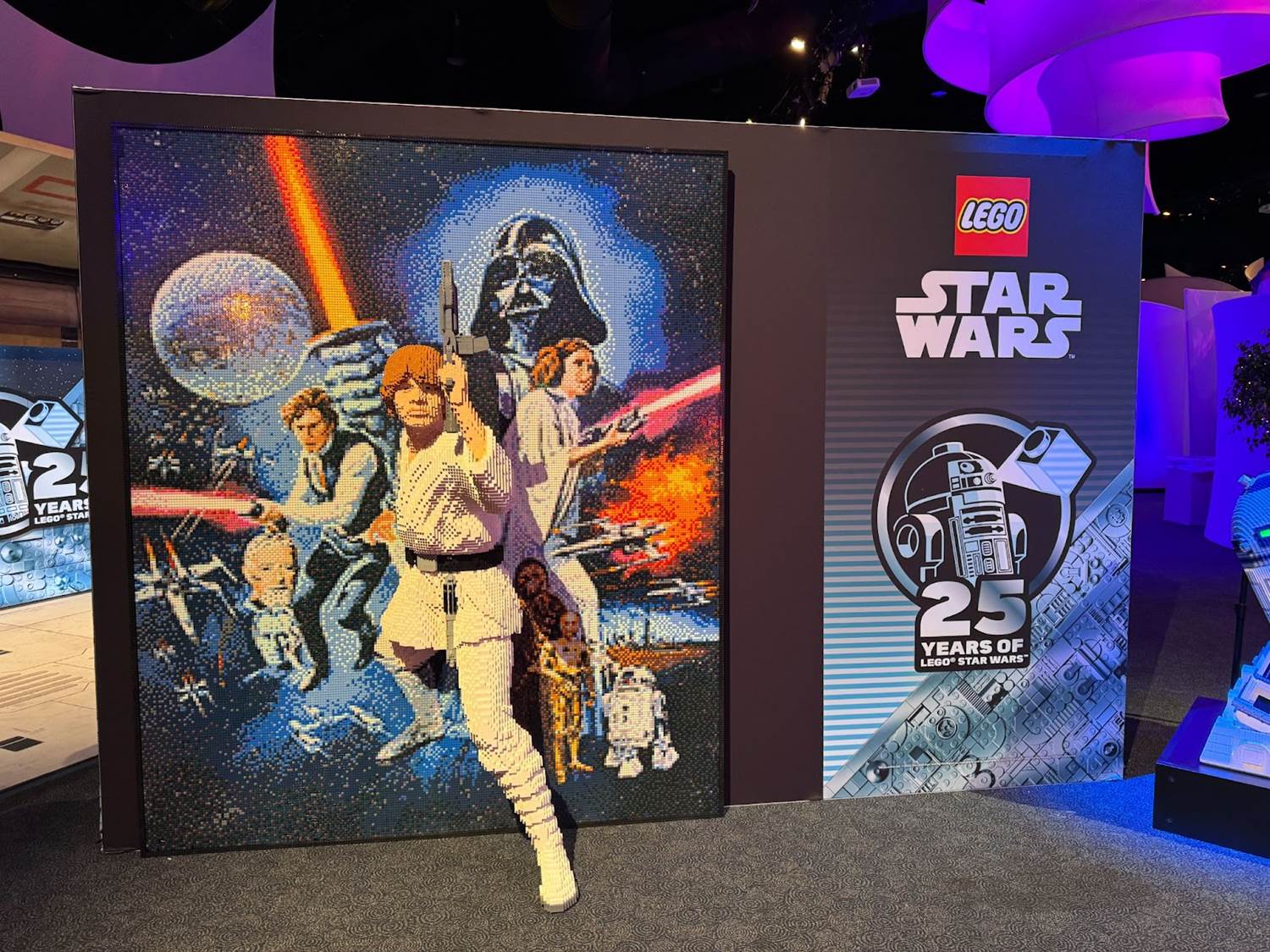 During Disney Consumer Products’ interactive Disney Play House Experience, we were offered a hands-on look at some LEGO Star Wars products that are about to be released on March 1st. This year marks the 25th anniversary of LEGO’s partnership with Star Wars, and this play zone was well-themed to the milestone, starting with a 3D poster for Star Wars: New Hope made entirely out of LEGO!