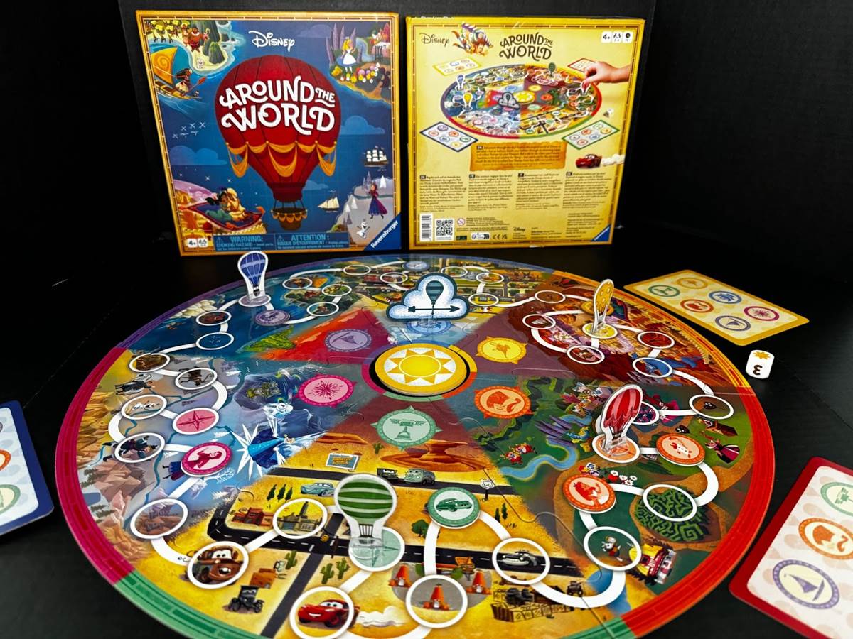 Take it from someone who recently circumnavigated the globe: it’s never been easier to travel around the world. And now Ravensburger makes it even easier with Disney Around the World, a family-friendly board game for ages 4 and up. Ravensburger was kind enough to share an advance copy with us, and we took it with us on the Disney Parks Around the World trip. While we were a little too busy to play it on the trip, now that it’s actually available, we had a lot of fun simulating our experience through the worlds of Disney.