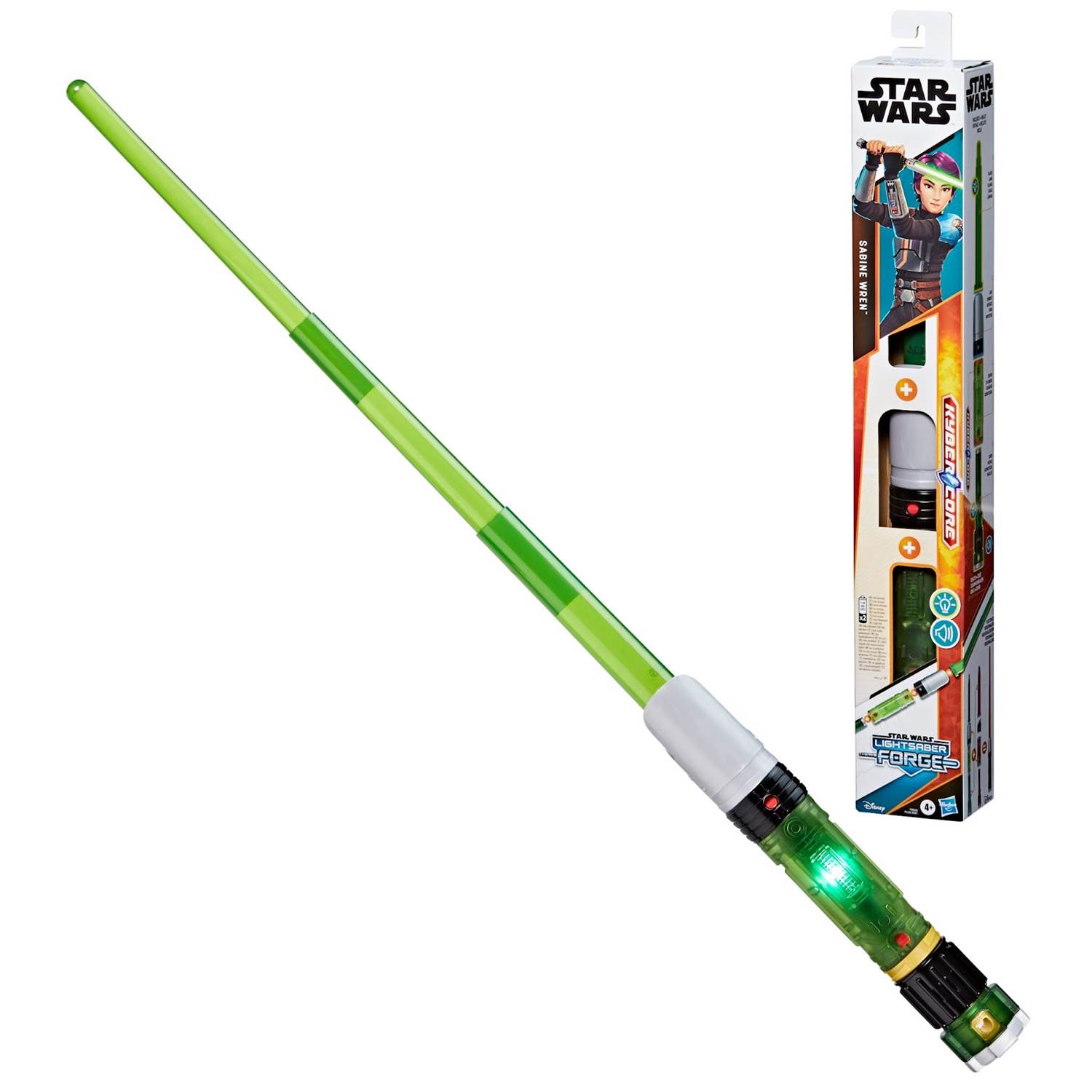 STAR WARS: LIGHTSABER FORGE KYBER CORE SABINE WREN ELECTRONIC GREEN LIGHTSABER ($27.99) - “Young Star Wars fans can imagine the excitement and adventure of a galaxy far, far away with the STAR WARS: LIGHTSABER FORGE KYBER CORE SABINE WREN ELECTRONIC GREEN LIGHTSABER inspired by the Lightsaber used by Sabine Wren in the STAR WARS: AHSOKA live-action series on Disney+. Featuring character-inspired design, deco, and sound effects, this Lightsaber includes an extendable glowing green blade that flicks open, cap, cover and core so kids ages 4 and up can assemble their own light up Lightsaber for imaginary duels. Plus, this Lightsaber Forge Kyber Core Lightsaber features a see-through glowing core, inspired by the kyber crystal found at the heart of every Jedi’s Lightsaber. These pieces are compatible across the entire Star Wars Lightsaber Forge line, with kids being able to mix-and-match parts to create, customize and master thousands of combinations!"