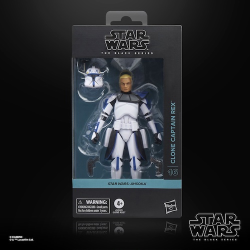 Star Wars: The Black Series Clone Captain Rex ($24.99) - “Rex served the Republic on the front lines during the Clone Wars, taking orders from Anakin Skywalker and Ahsoka Tano first as a captain and later a commander. STAR WARS: THE BLACK SERIES includes 6-inch action figures, vehicles, and roleplay items from the 40-plus-year legacy of the STAR WARS Galaxy, letting fans create galactic scenes with a faithfulness to STAR WARS comic books, movies, and series. This STAR WARS action figure is detailed to look like Clone Captain Rex from the STAR WARS: AHSOKA live-action series on Disney+. Comes with 2 blaster accessories and a helmet accessory."