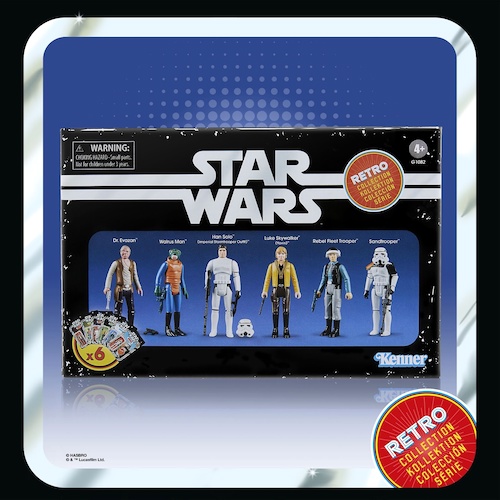 Star Wars Retro Collection Star Wars: A New Hope Figure Multipack ($59.99) - “Ideal for new fans and long-time collectors alike, the STAR WARS Retro Collection features detailing and design calling back to the original 1970s and 1980s figures. Inspired by STAR WARS: A NEW HOPE, this Retro Collection 3.75-inch-scale multipack is ideal for play or display, bringing back the nostalgic feel of Kenner toys (additional products each sold separately, subject to availability). Includes the classic duo of Dr. Evazan and Walrus Man, plus Han Solo (Imperial Stormtrooper Outfit), Luke Skywalker (Yavin), Rebel Fleet Trooper, and Sandtrooper figures. Includes 10 accessories for poseability on your shelf, including Han Solo’s removable helmet and blaster accessories for each character." (Target Exclusive, Available Spring 2025, Pre-Order Begins March 5th at 1:00 PM Eastern Time)
