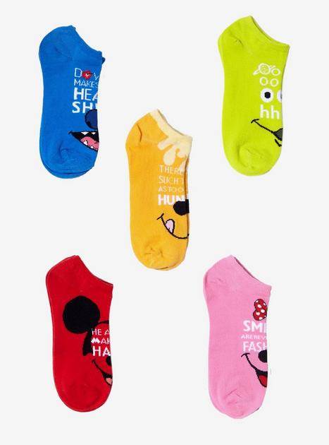 Disney Character Quotes No-Show Socks 5 Pair