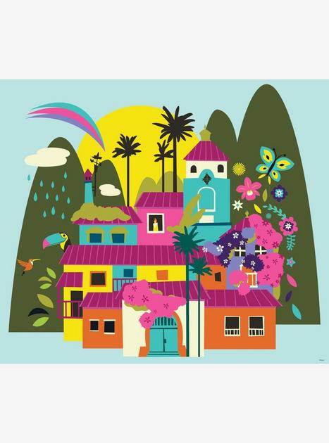 Finally with a family as big as the Madrigals, you’ve got to have a big house where everyone can spread out! This beautiful tapestry displays the large, stacked Casita in its various colors surrounded by massive hills, palm trees and rising yellow sun.