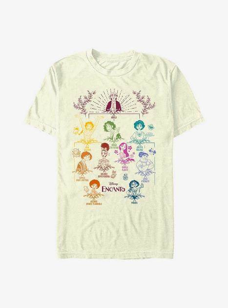 The Madrigal Family is quite large and with so many special gifts, it’s hard to keep track of who does what. This simple t-shirt breaks down the family tree (minus Augustin and Felix who married into the family) starting with Abuela, her children and her children’s children.