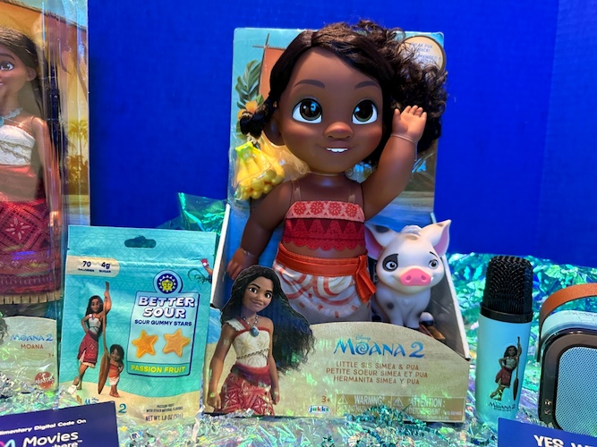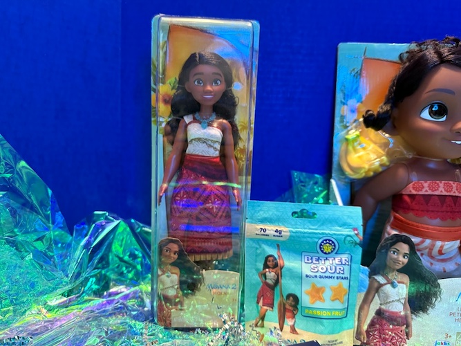 From Mattel, we received a 12-inch Moana doll in the dress she wears for most of Moana 2. We also got a “boat snack" in the form of Moana-themed passionfruit gummies from Better Sour.