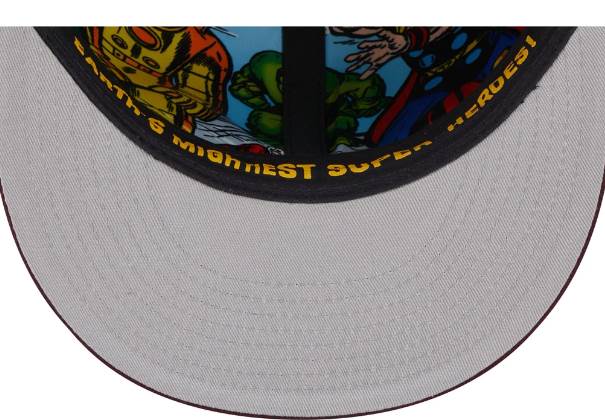 - Additional details include an Earth's Mightiest Super Heroes sweatband with a screen-printed design at the interior crown and a gray undervisor.
