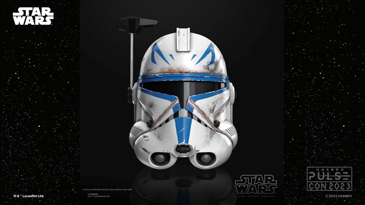 Then two items were revealed for Hasbro’s life-size roleplay line of Star Wars toys: Sabine Wren’s (formerly Ezra Bridger’s) lightsaber from Star Wars: Ahsoka coming to the Force FX Elite series, and Captain Rex’s clone trooper helmet joining The Black Series.