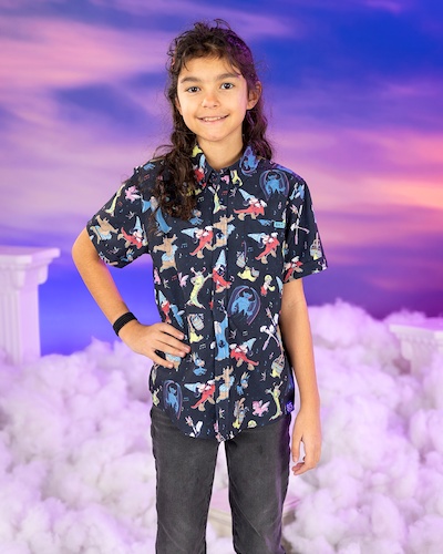 While Sorcerer Mickey is the icon of Fantasia, the towering, villainous Chernabog is a presence you won’t soon forget. Both characters star on their own Kunuflex shirts, and Mickey gets a chance to shine in several patterns including the limited edition “Sketches in the Stars." Chernabog takes the spotlight on “Fright on Bald Mountain," a delightfully dark design that’s elegant and spooky.