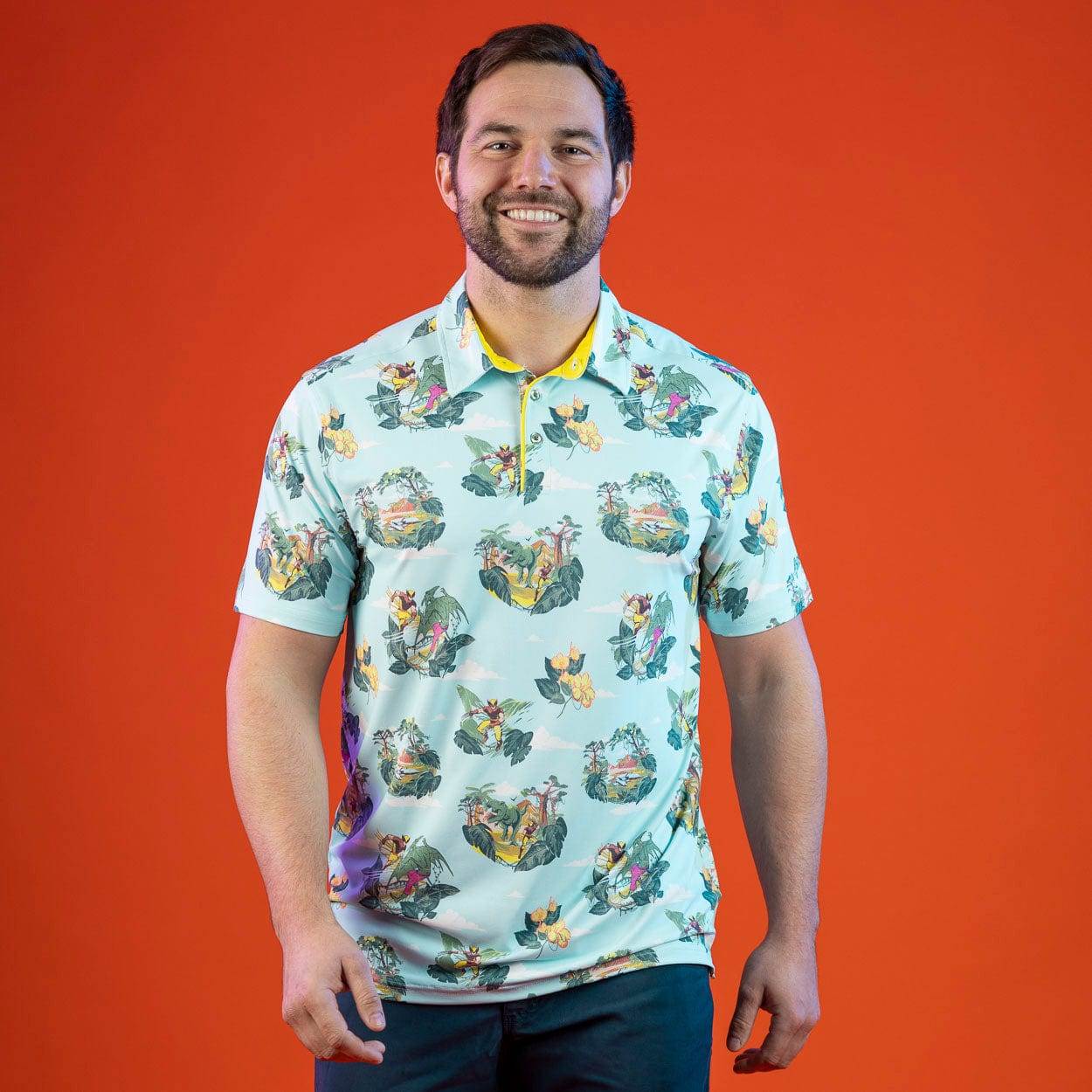 - “Savage Lands" pits Wolverine against a T-rex and human-pteranodon hybrid just like the comic storyline. I wonder who will win? While the theme might be a little harsh, the design is relaxing like any good vacation shirt should be and hopefully, your adventures won’t take you to a savage landscape.