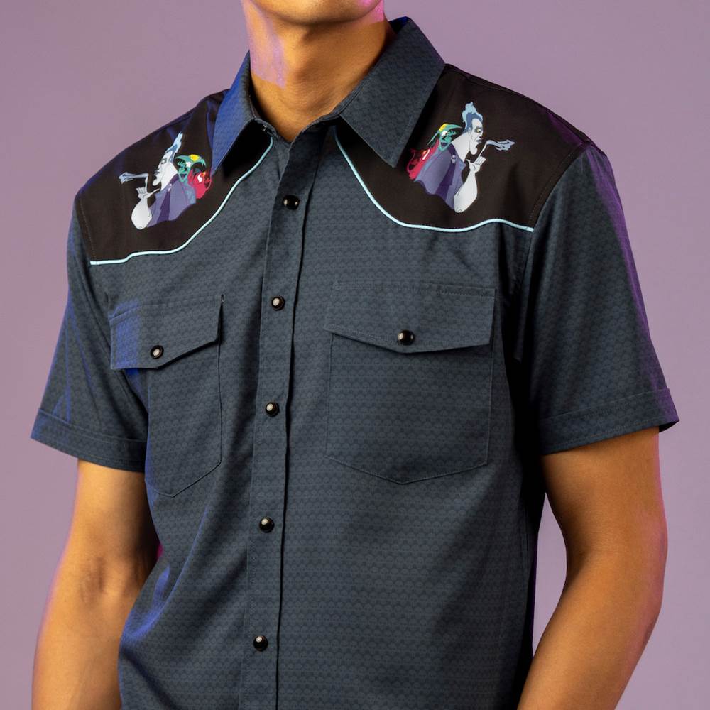 - Wrapping things up is “Dark and Gloomy," an incredible roper style button down spotlighting Hades and his minions Pain and Panic who hang out on both shoulders.
