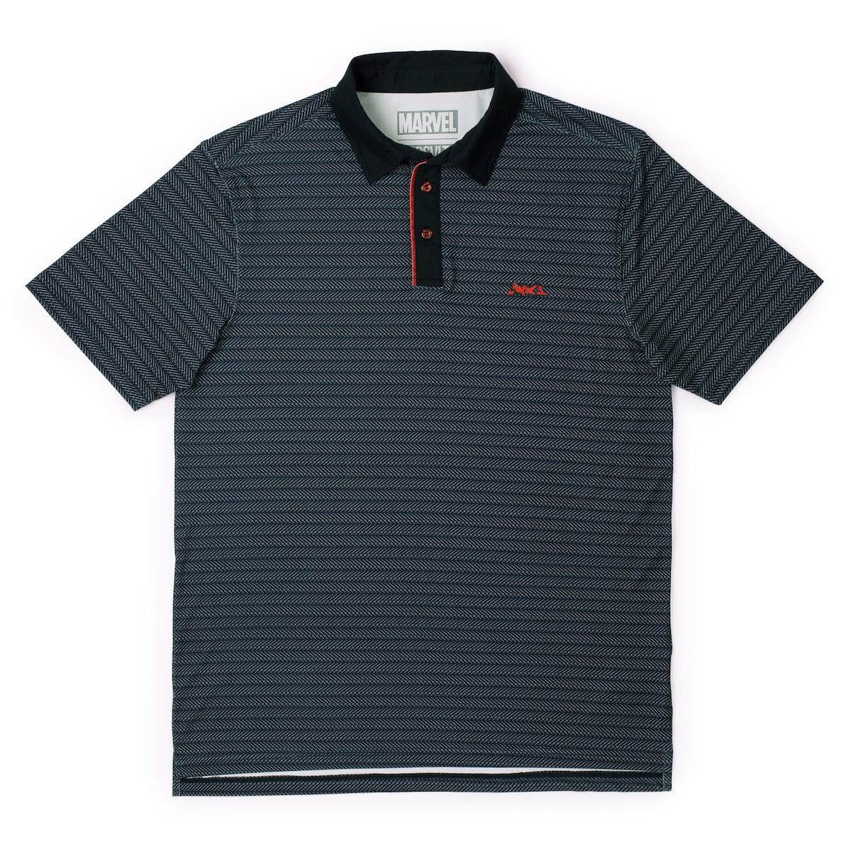 - Switching things up to a comfortable polo that’s great for a day on the green is, “Wicked Slice" featuring rows of stripes made up of miniature swords. Another Deadpool touch is the small patch on the chest with our beloved anti-hero lying down in an alluring pose.