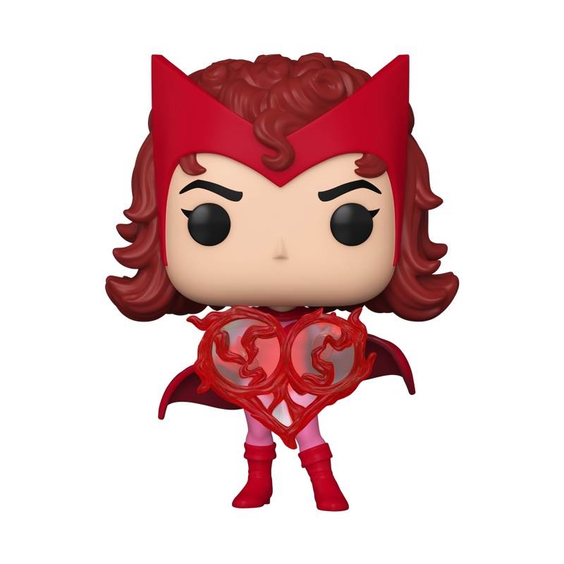 - Scarlet Witch is in her classic red and pink costume from the comics (complete with headdress, boots and cape) and she’s working her Chaos Magic to form a lovely red heart.