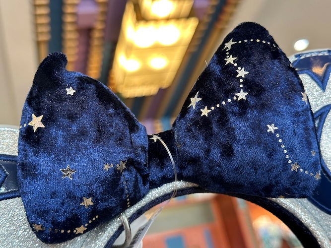 - Retailing for $34.99, these ears contain a blue bow covered with stars, with the retro Walt Disney World logo etched onto the side.