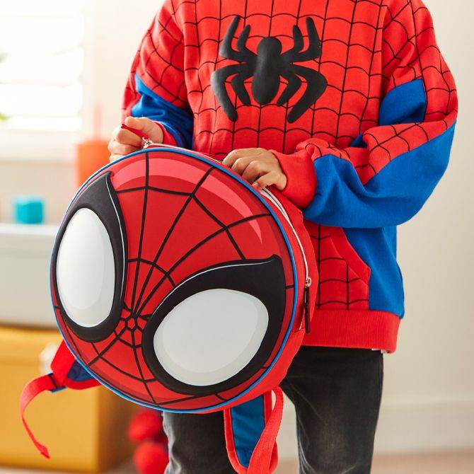 - And for fans who want the ultimate matching experience, the round backpack with Spider-Man’s mask on the front will have kids eager to get to school…to show off their new swag!