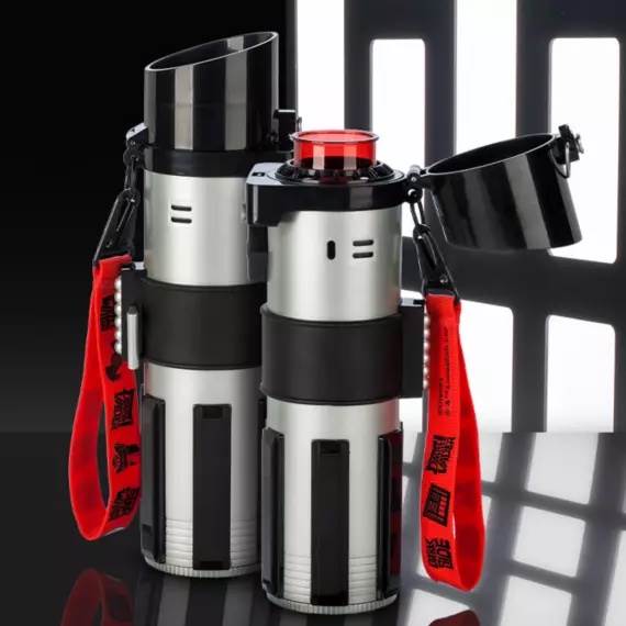 - Stay hydrated as you make your way throughout the galaxy with this unique cylindrical bottle molded after Vader’s icon hilt.